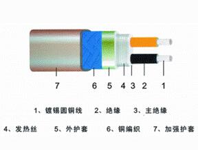 電源母線為兩根平行的J緣軟銅線,在內(nèi)J緣上纏繞鎳鉻電熱絲,并將電熱絲每隔一定距離(即“發(fā)熱節(jié)長”)與母芯線連接,從而形成連續(xù)的并聯(lián)電阻。母芯線通電后,各關(guān)聯(lián)電阻發(fā)熱因而形成一條連續(xù)的加熱帶,而且可以根據(jù)使用情況發(fā)熱節(jié)長度任意剪接。