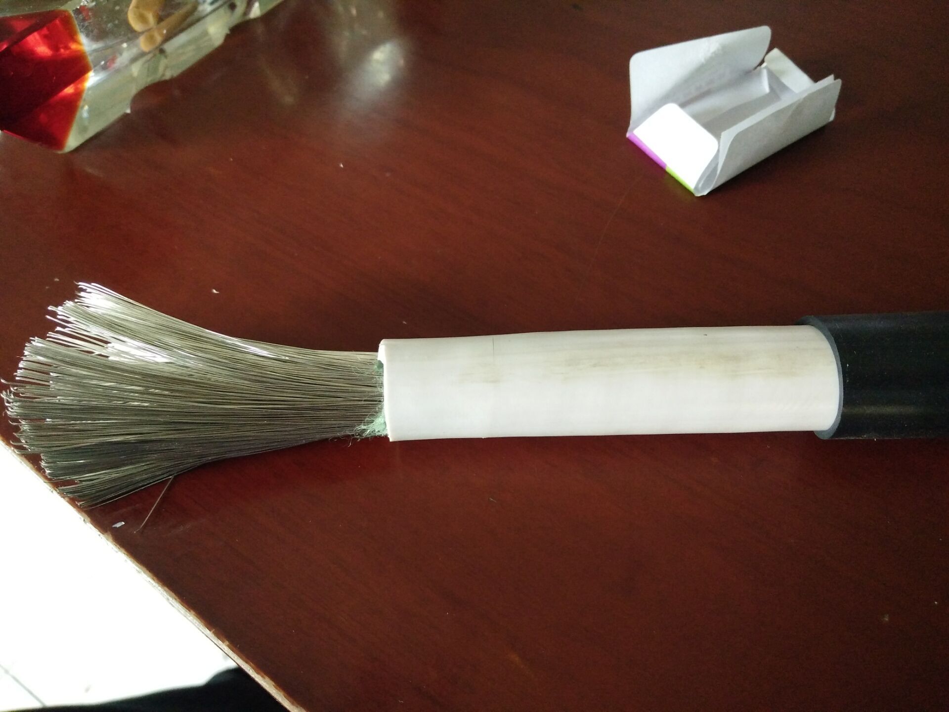 6、電線應(yīng)能經(jīng)受浸漆試驗,電纜經(jīng)130±5℃、5小時恒溫后,浸入溫度為50±5℃的1032漆中30分鐘,取出滴干,再經(jīng)130±5℃、48小時恒溫,后將電線卷繞在規(guī)定直徑的圓棒上,電線護(hù)套層應(yīng)無開裂、脆裂和發(fā)粘等現(xiàn)象。