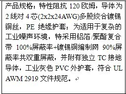 1.RS485信號(hào)線,RS485數(shù)據(jù)電纜,RS-485通訊電纜,新型特種復(fù)合J緣和外護(hù)套材料,鍍錫屏蔽,抗干擾能力強(qiáng);