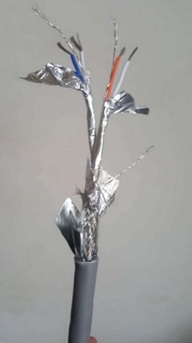 2線對(duì)4芯(2x 2x24AWG)(2*2*0.2)(2*2*0.5)(2*2*0.75)(2*2*1.0)(2*2*1.5)多股絞合鍍錫銅絲,PE絕緣護(hù)套;為適用于復(fù)雜的工業(yè)噪聲環(huán)境,特采用鋁箔/聚酯復(fù)合帶100%屏蔽率+鍍錫銅編制網(wǎng)90%屏蔽率共雙重屏蔽,并附有獨(dú)立TC接地導(dǎo)體,工業(yè)灰色PVC外護(hù)套,特性阻抗120歐姆 。